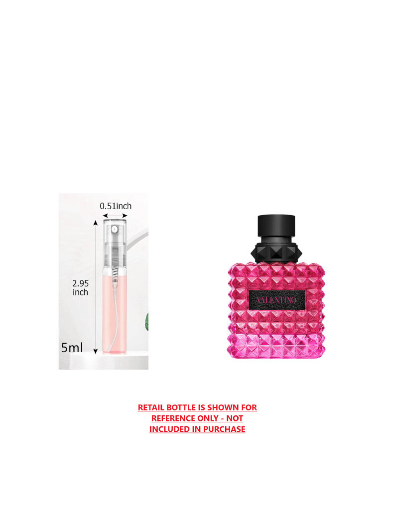 VALENTINO DONNA BORN IN ROMA EXTRADOSE PARFUM FOR WOMEN 0.17 FL OZ / 5 ML TRAVEL DECANT SPRAY NOT LARGE BOTTLE A modern floral oriental where elegant jasmine meets an edgy, sweet bourbon vanilla. Key Notes: Black Currant, Jasmine, Bourbon Vanilla. 100% AUTHENTIC GUARANTEE — TRAVEL DECANT SAMPLE SIZE SPRAY PRODUCTS ARE INDEPENDENTLY REBOTTLED BY FRAGRANCE HOUSE FROM GENUINE ORIGINAL BOTTLES.